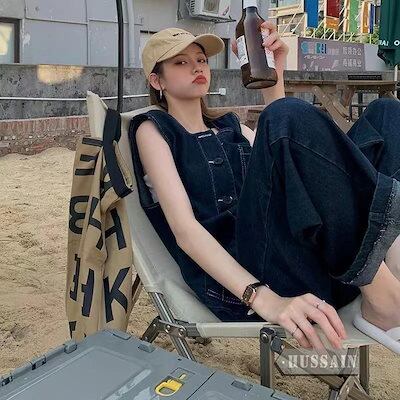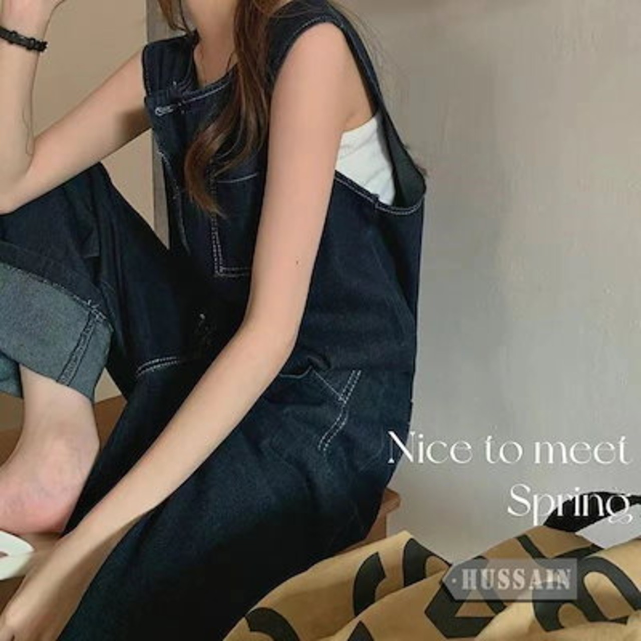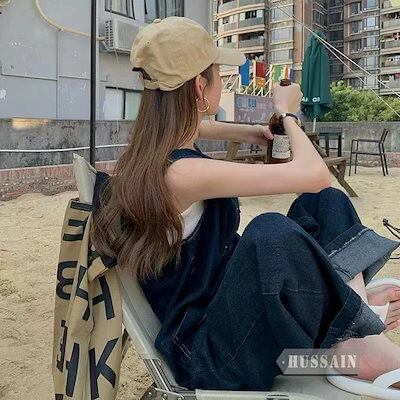 リラックス感ある雰囲気 ジャンプスーツ オーバーオール オールインワン サロペット ワイドパンツ ストレート ノースリーブ ゆるダボ ゆったり カジュアル 韓国系 フレンチ