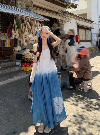 2024春夏タイダイ柄グラデーション キャミワンピース ノースリーブ ワンピース ロングワンピース 体型カバー レトロ 韓国ファッション レディース レトロ 大人可愛い