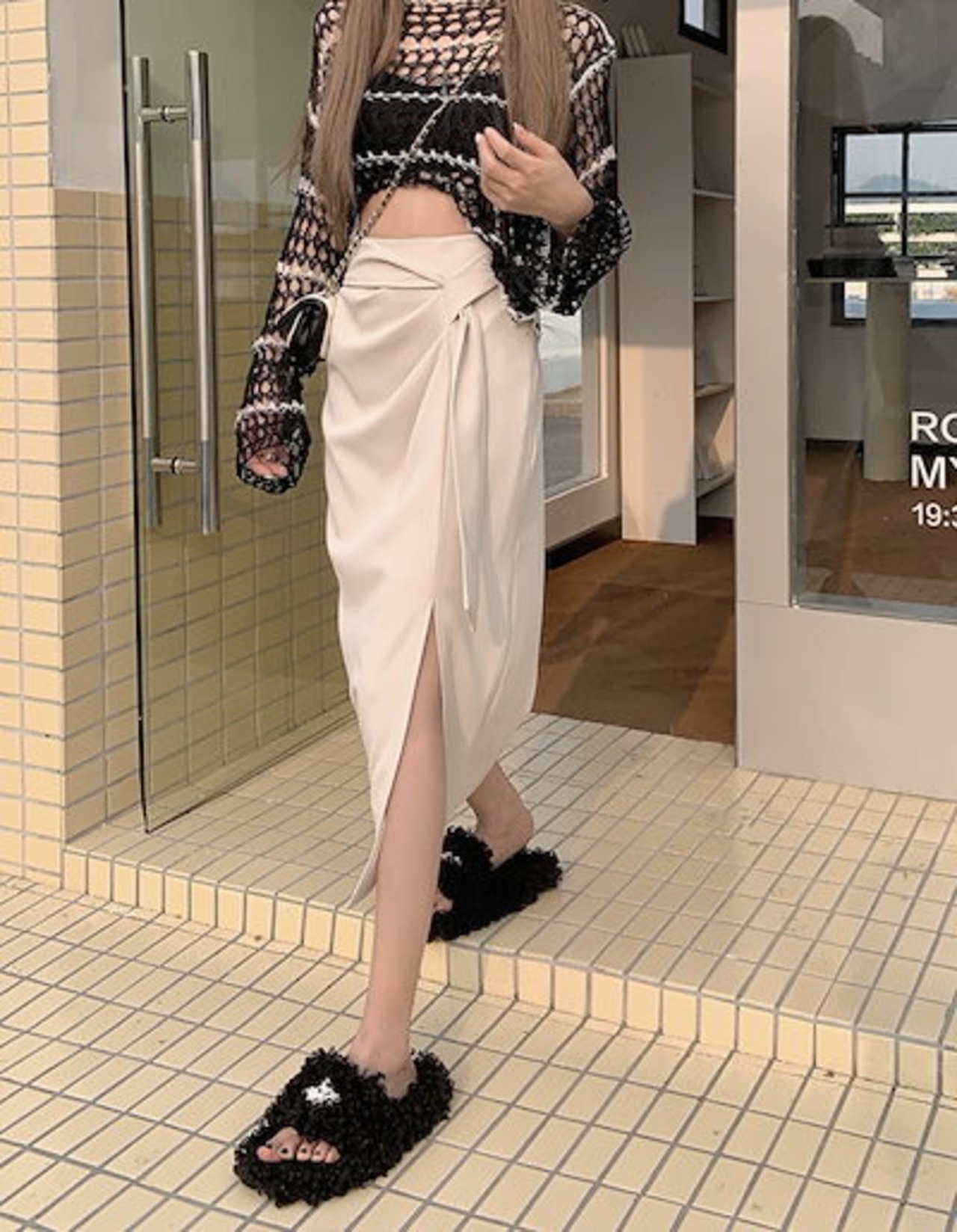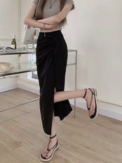 2024 春夏スカート ミモレ丈 Aライン サイドスリット ハイウエスト 美脚効果 脚長効果 細見え 夏 白 黒 茶色 おしゃれ かわいい きれいめ 韓国ファッション レディース お出かけ