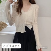 2024 夏 韓国 ライトニット カーディガン トップス 羽織り加工 ショート 薄手 長袖 紫外線対策 UV対策 きれいめ オフィス OLネックカジュアルフレンチフェミニンファッション韓国 レディース