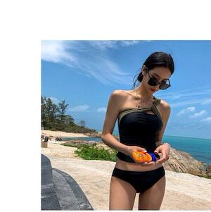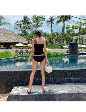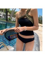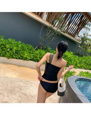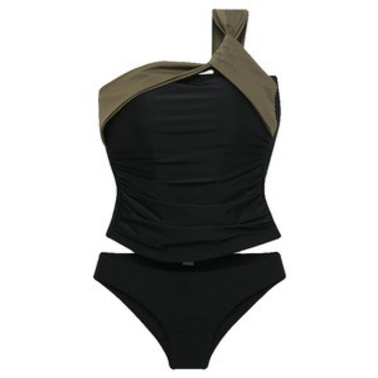 タンキニ ワンショル ワンショルダー 着痩せ シンプル バイカラー カッコイイ クール シック セクシー レトロ 股上浅め スタイリッシュ 可愛い 大人 お姉さん イイ女 スタイルアップ モテ レディ