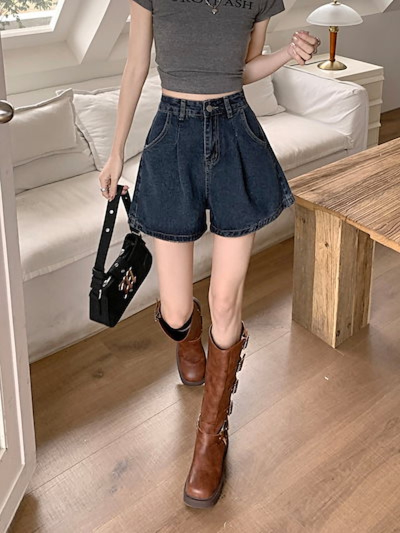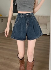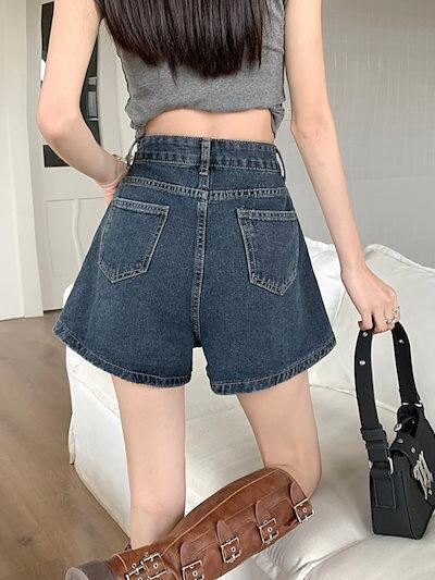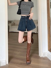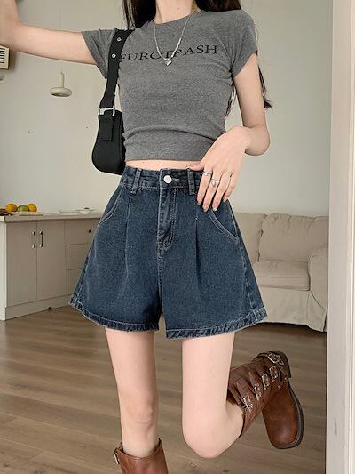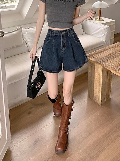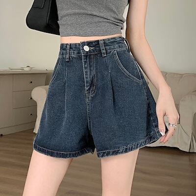 2024 春夏パンツ デニム ジーンズ ショート丈 タック ハイウエスト 美脚効果 脚長効果 細見え 夏 おしゃれ かわいい 韓国ファッション レディース お出かけ