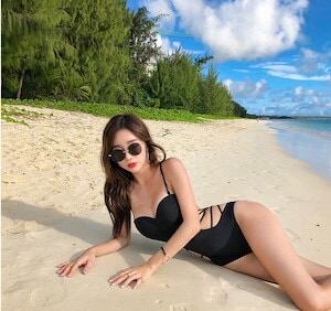 ワンピース 水着 レディース 黒 ハイレグ セクシー きれいめ カッコイイ モノキニ おしゃれ クール 肌見せ 紐 キャミソールタイプ パット付き ブラック 無地 海外 水着 ワンピ オールインワン
