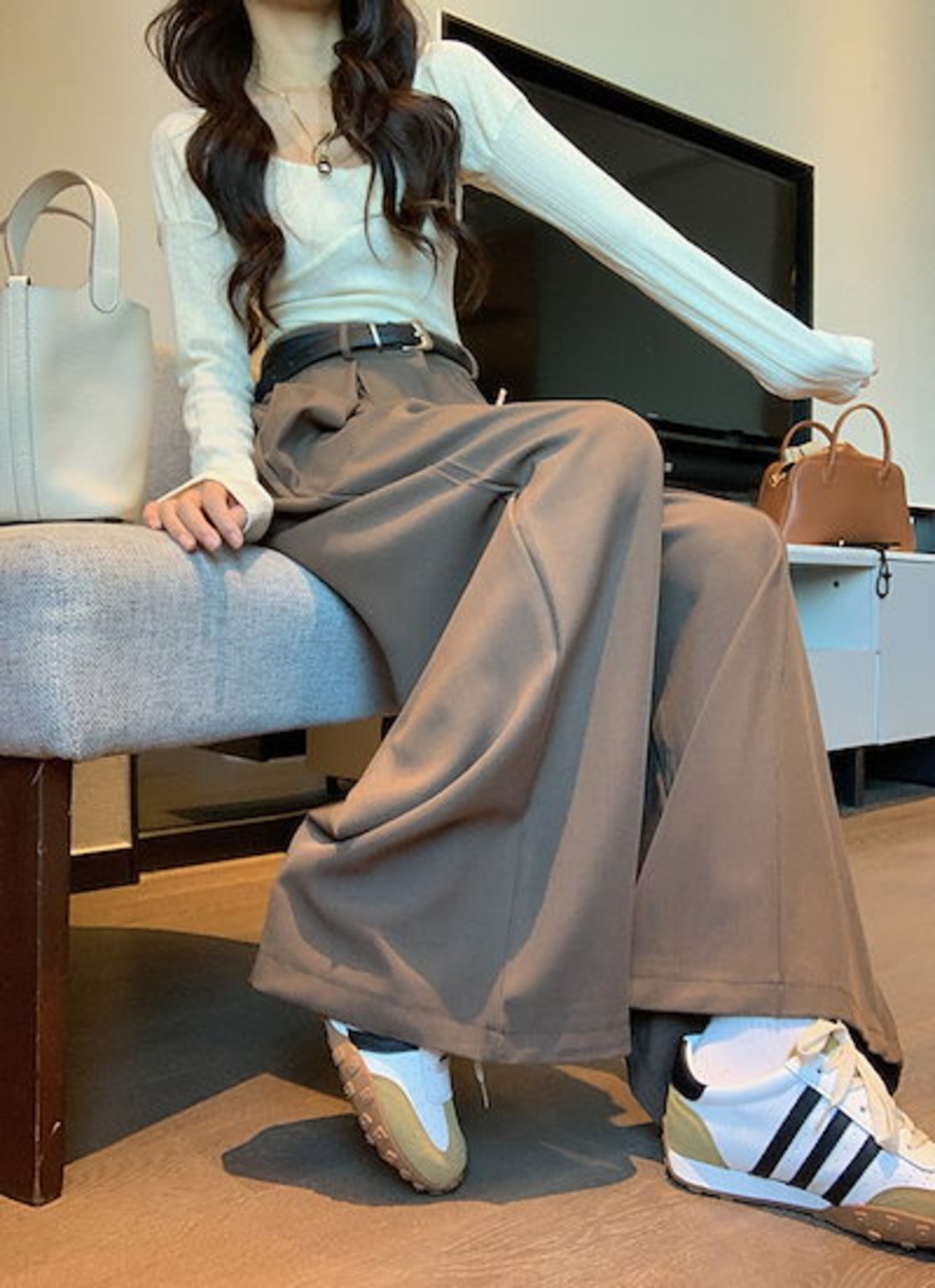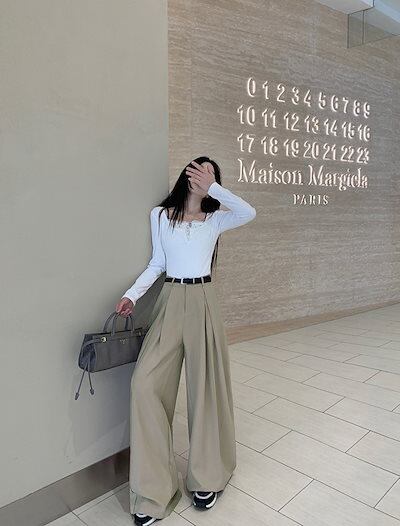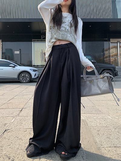 2024 春夏パンツ ロング丈 ワイド ストレート ハイウエスト 美脚効果 脚長効果 細見え 夏 茶色 黒 おしゃれ かわいい 韓国ファッション レディース お出かけ
