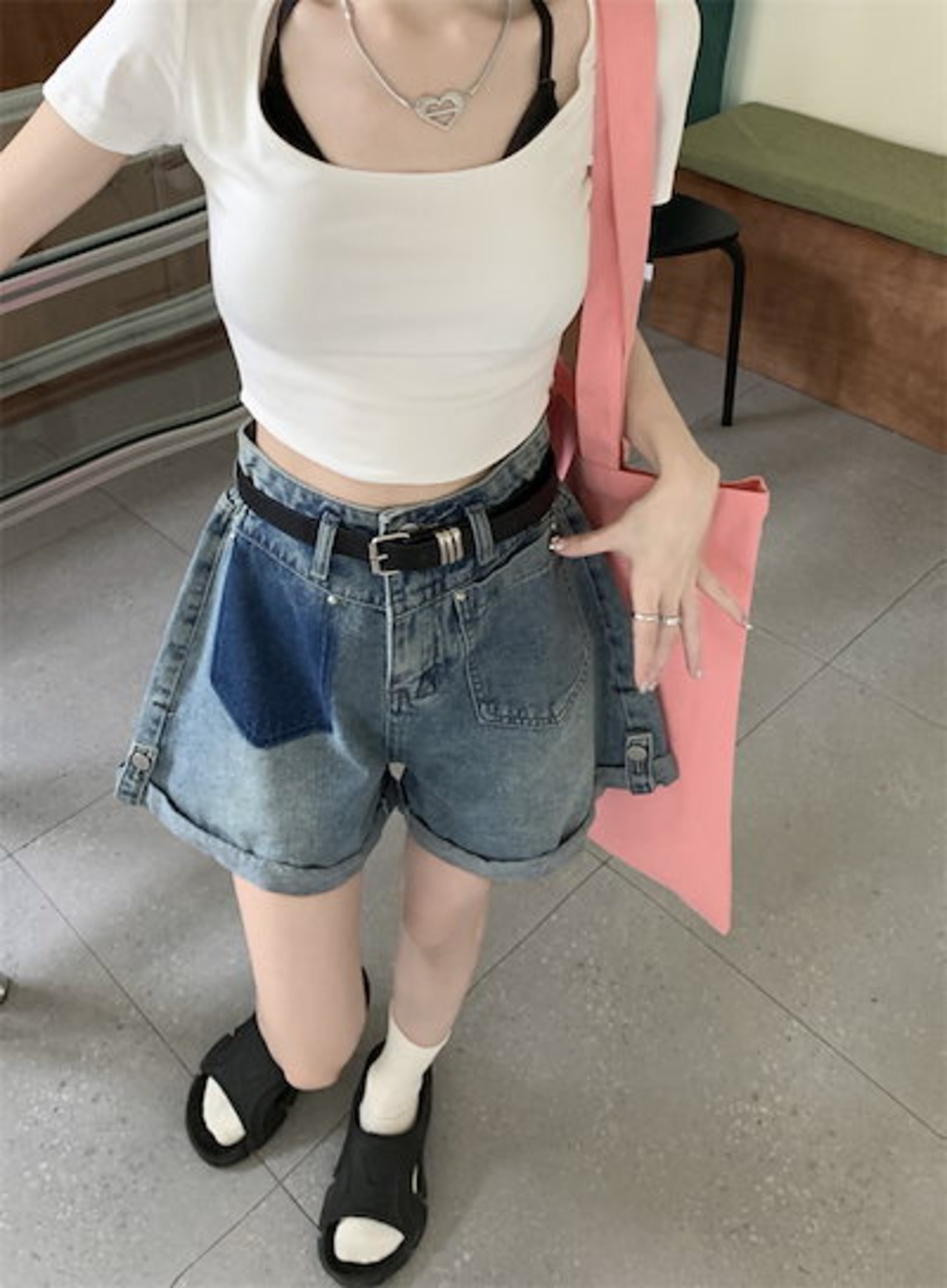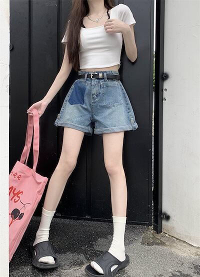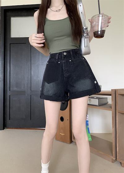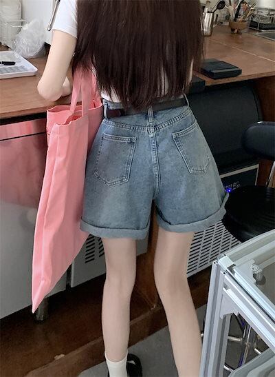 2024 春夏パンツ デニム ジーンズ ショート丈 ロールアップ ハイウエスト 美脚効果 脚長効果 細見え 夏 黒 おしゃれ かわいい 韓国ファッション レディース お出かけ