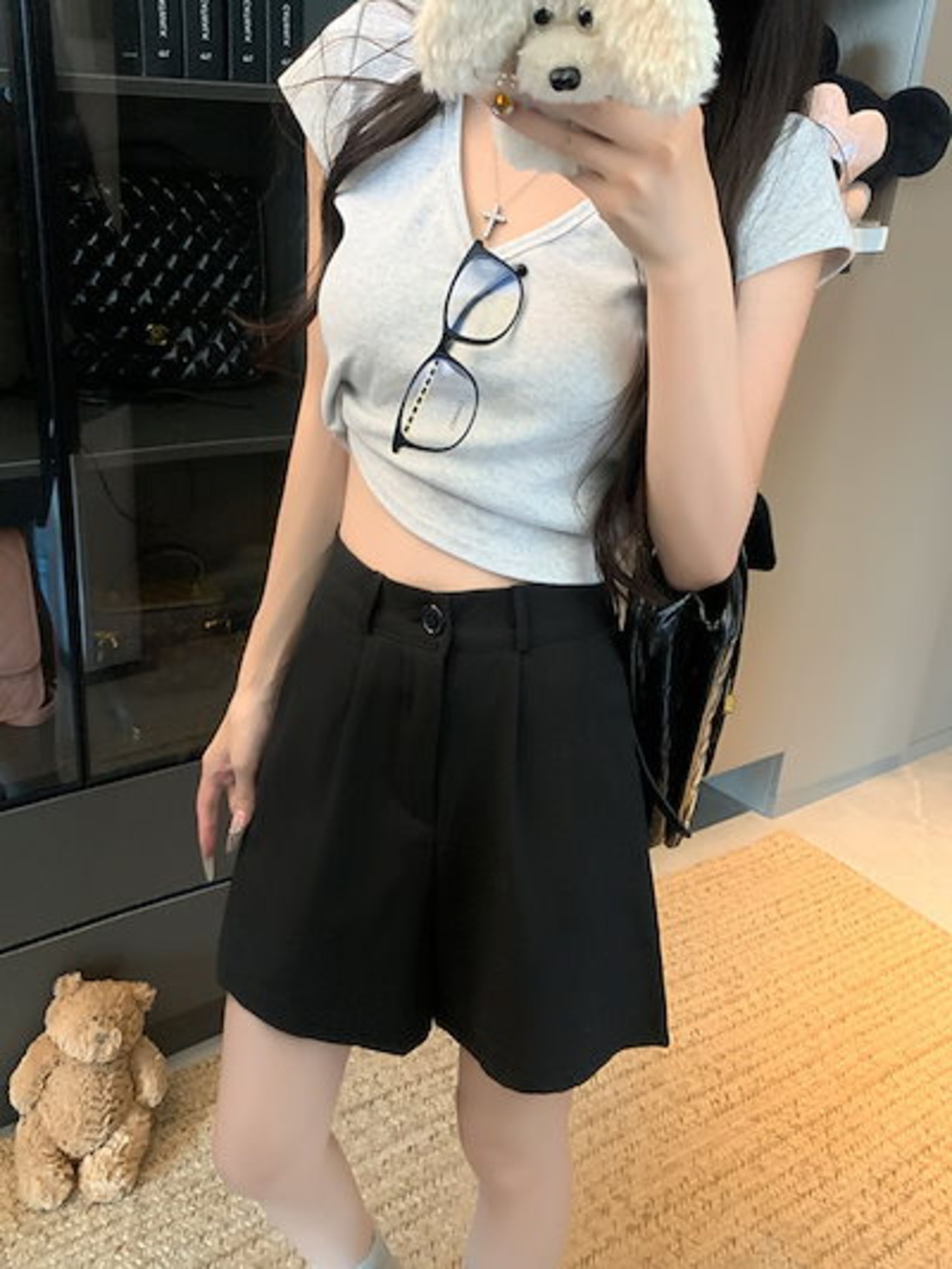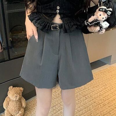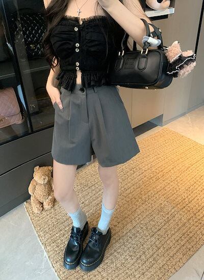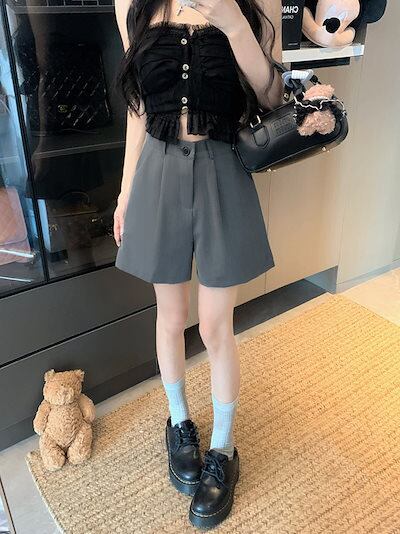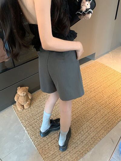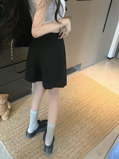 2024 春夏パンツ ショート丈 タック ワイド ハイウエスト 美脚効果 脚長効果 細見え 夏 黒 おしゃれ かわいい 韓国ファッション レディース お出かけ