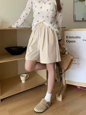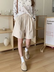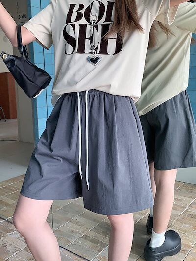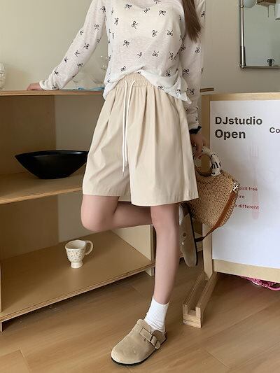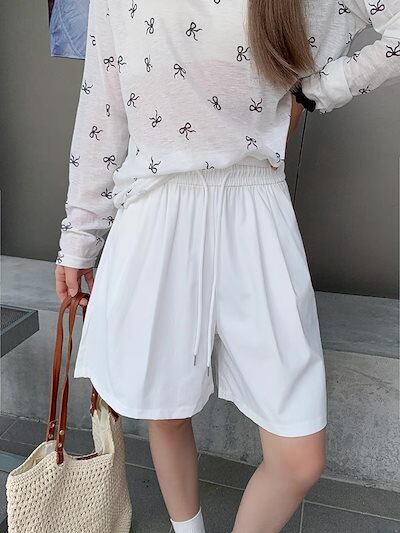2024 春夏パンツ ハーフパンツ ワイド ストレート ウエストゴム ハイウエスト 美脚効果 脚長効果 細見え 夏 水色 黒 白 おしゃれ かわいい 韓国ファッション レディース お出かけ