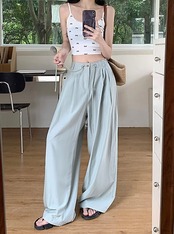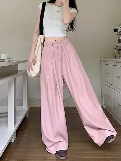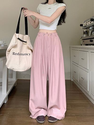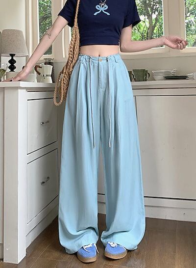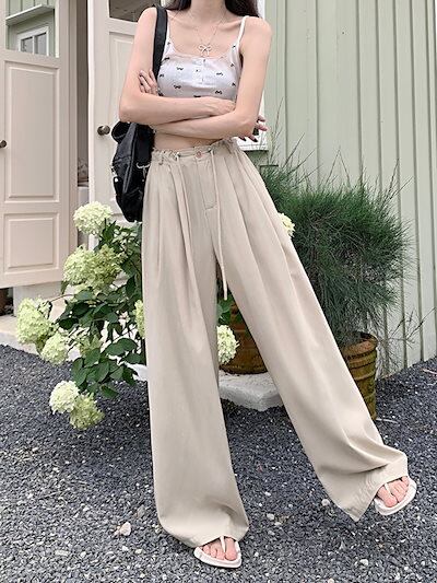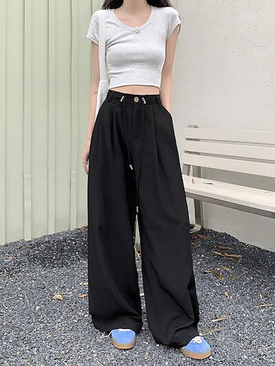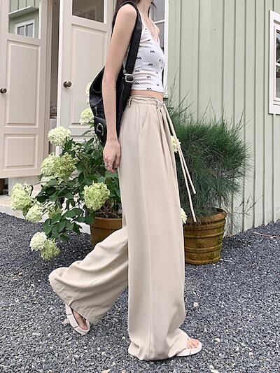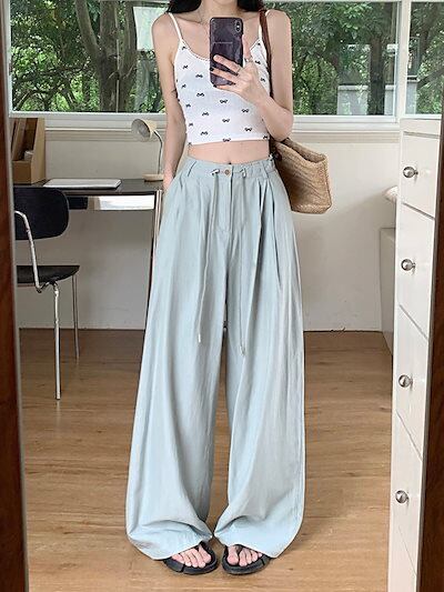 2024 春秋パンツ ロング丈 ワイド ストレート ハイウエスト 美脚効果 脚長効果 細見え 夏 水色 黒 おしゃれ かわいい 韓国ファッション レディース お出かけ