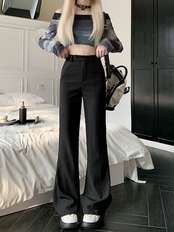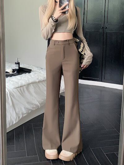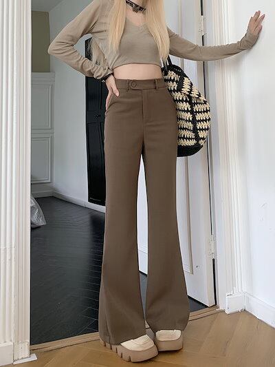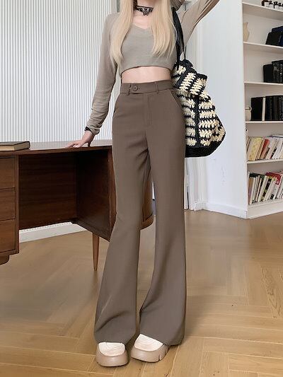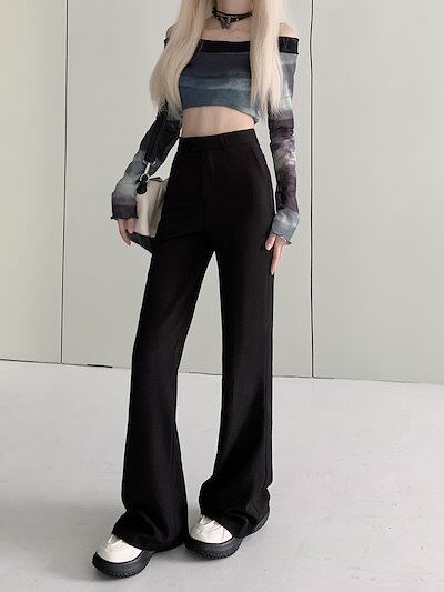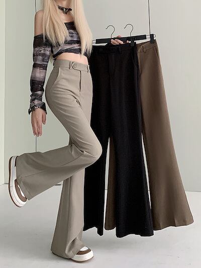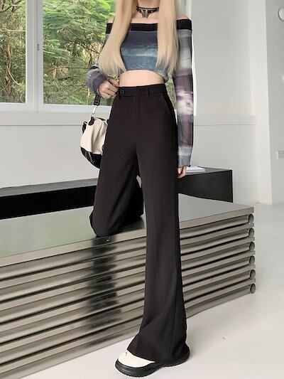 2024 春秋 パンツ モップパンツ ロングパンツ ワイド ハイウエスト 脚長効果 美脚効果 細見え 夏 カジュアルフィット かわいい 韓国系ファッション レディース お出かけ