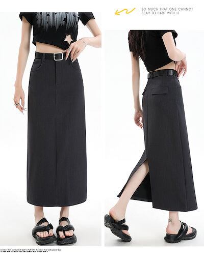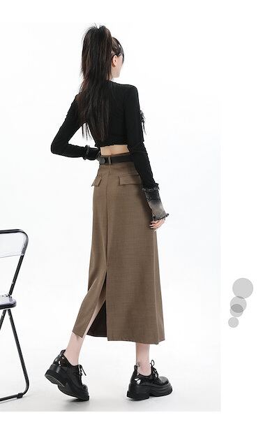 2024 春秋 スカート ロング丈 ポケット ハイウエスト 美脚効果 脚長効果 細見え 夏 おしゃれ ロング かわいい 韓国ファッション レディース お出かけ