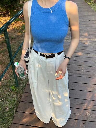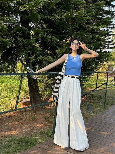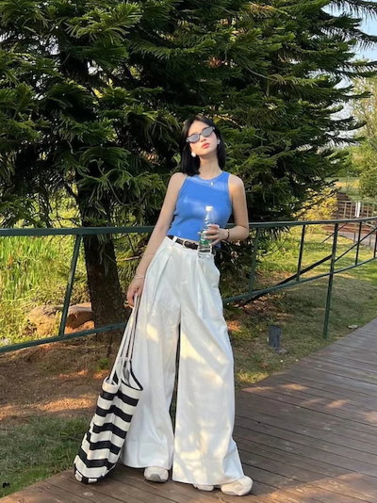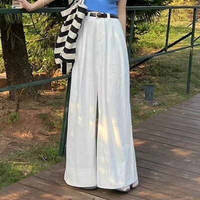 2024 春夏パンツ モップパンツ ワイド ハイウエスト 脚長効果 美脚効果 細見え 夏 白 ホワイト カジュアル おしゃれ かわいい 韓国ファッション レディース お出かけ
