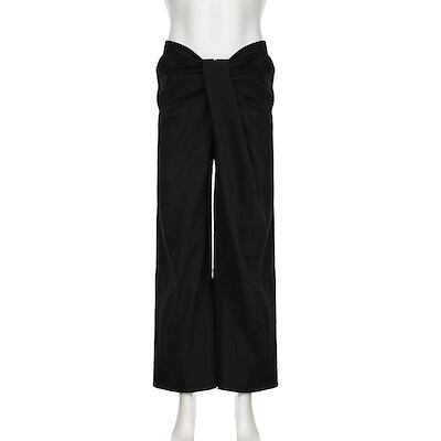 2024 春夏秋 パンツ ロング丈 美脚効果 脚長効果 細見え 夏 白 黒 おしゃれ かわいい キュート 甘め 韓国系ファッション レディース お出かけ