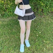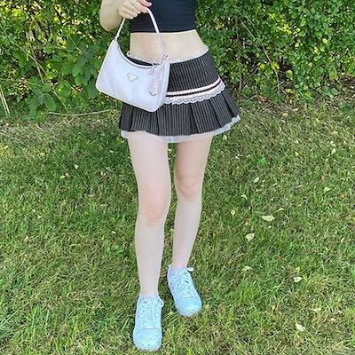 2024 夏秋 スカート かわいい ミニ丈 ハイウエストレトロデザイン 脚長効果 美脚効果 細見えボトムス裏地付き 透け防止 夏 黒 カジュアル おしゃれ 甘め フレンチ 韓国系ファッション