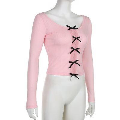 2024夏秋 tシャツ 長袖 トップス レイヤード風肌見せ重ね着風 韓国 ファッション系 カットソーインナーショート フィット T レディース カジュアル きれいめ フェミニンフレンチモックネック
