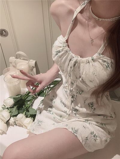 2024春夏 ワンピース ミニ丈 キャミソール ゆったり 夏 カラフル フェミニン韓国系ファッション レディース おしゃれ かわいい キュートネック柄 甘め フレンチカジュアル お出かけ