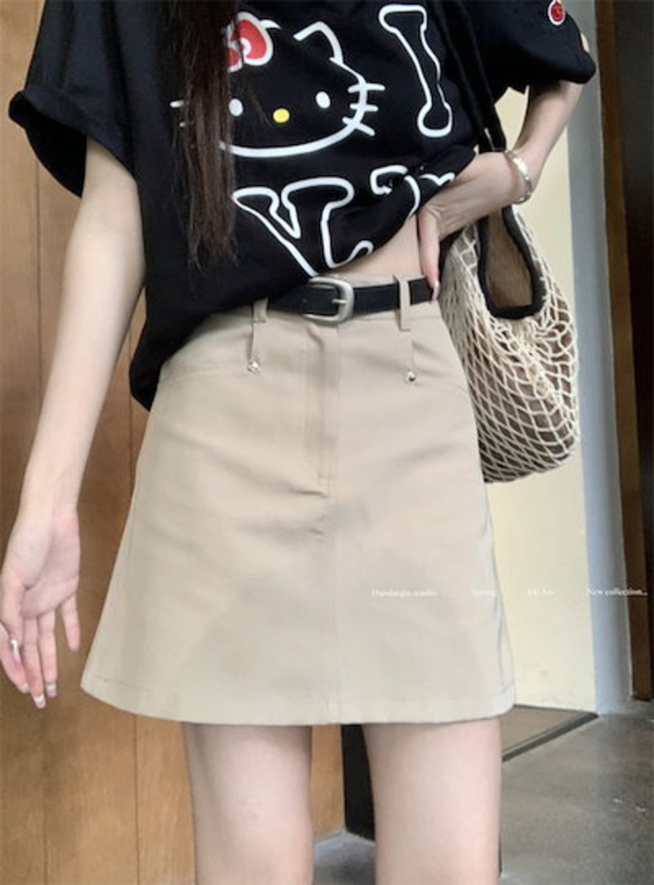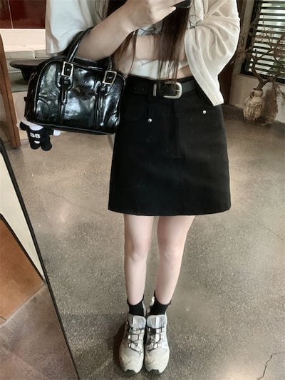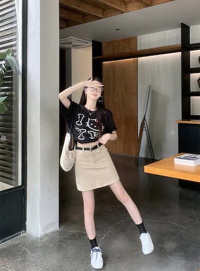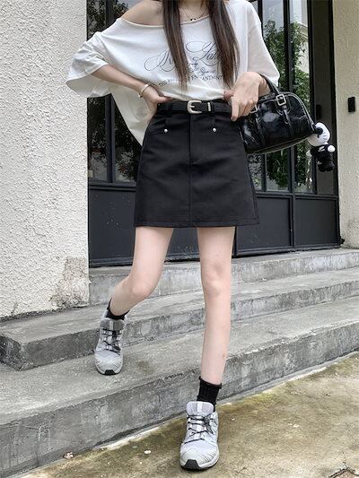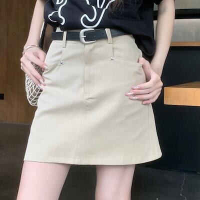 2024 春夏スカート ミニ丈 Aライン 台形 ハイウエスト 美脚効果 脚長効果 細見え 夏 白 黒 茶色 おしゃれ かわいい 韓国ファッション レディース お出かけ