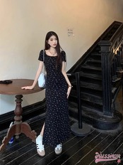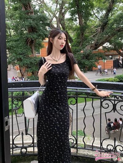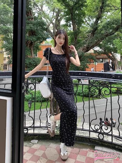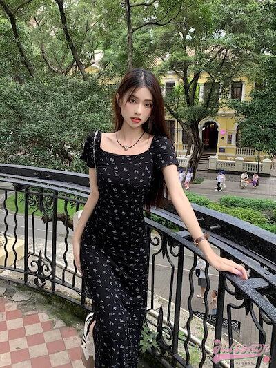 2024 夏 韓国 ワンピース レディース カラー 半袖 ワンピ ストレッチ ブラック フィット ボディライン お姉さん フェミニン 大人女子 大人っぽ