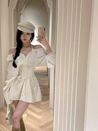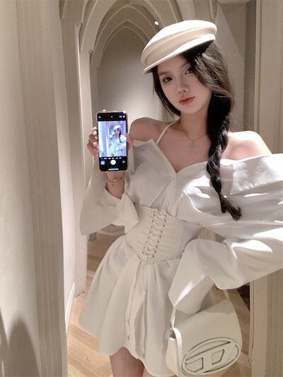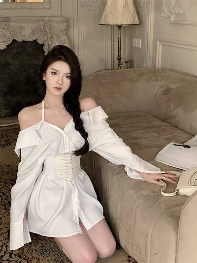 2024夏 韓国 恋のおまじないをかけるワンピース カジュアル 色っぽ 女っぽ ネック ゆったりフレンチスタイルアップ型きれいめ 大人っぽ 上品 お姉さん ゆったりスリーブ フェミニンレディース