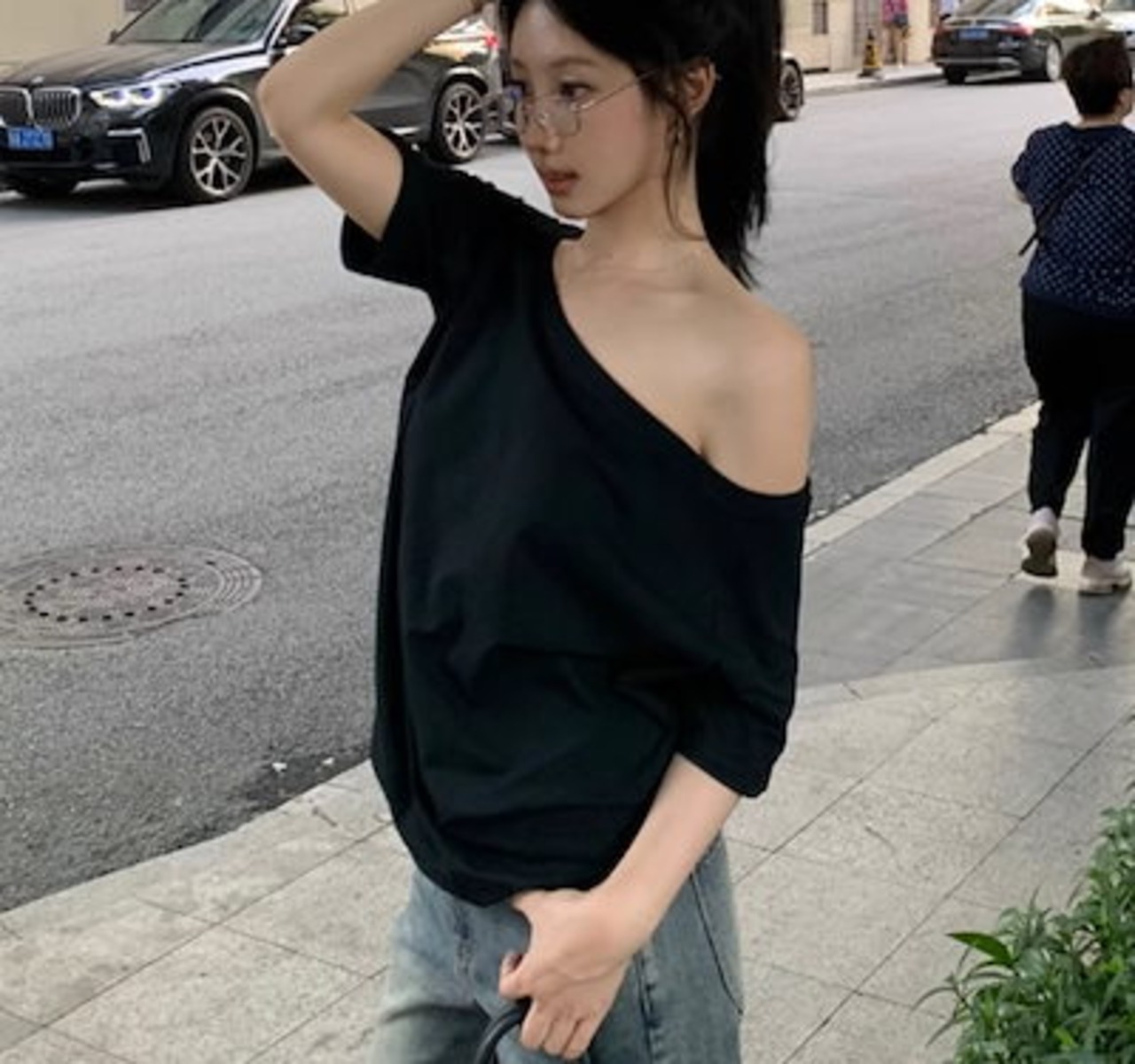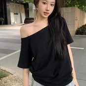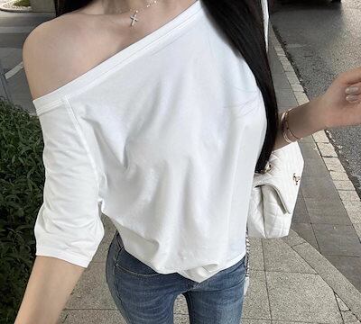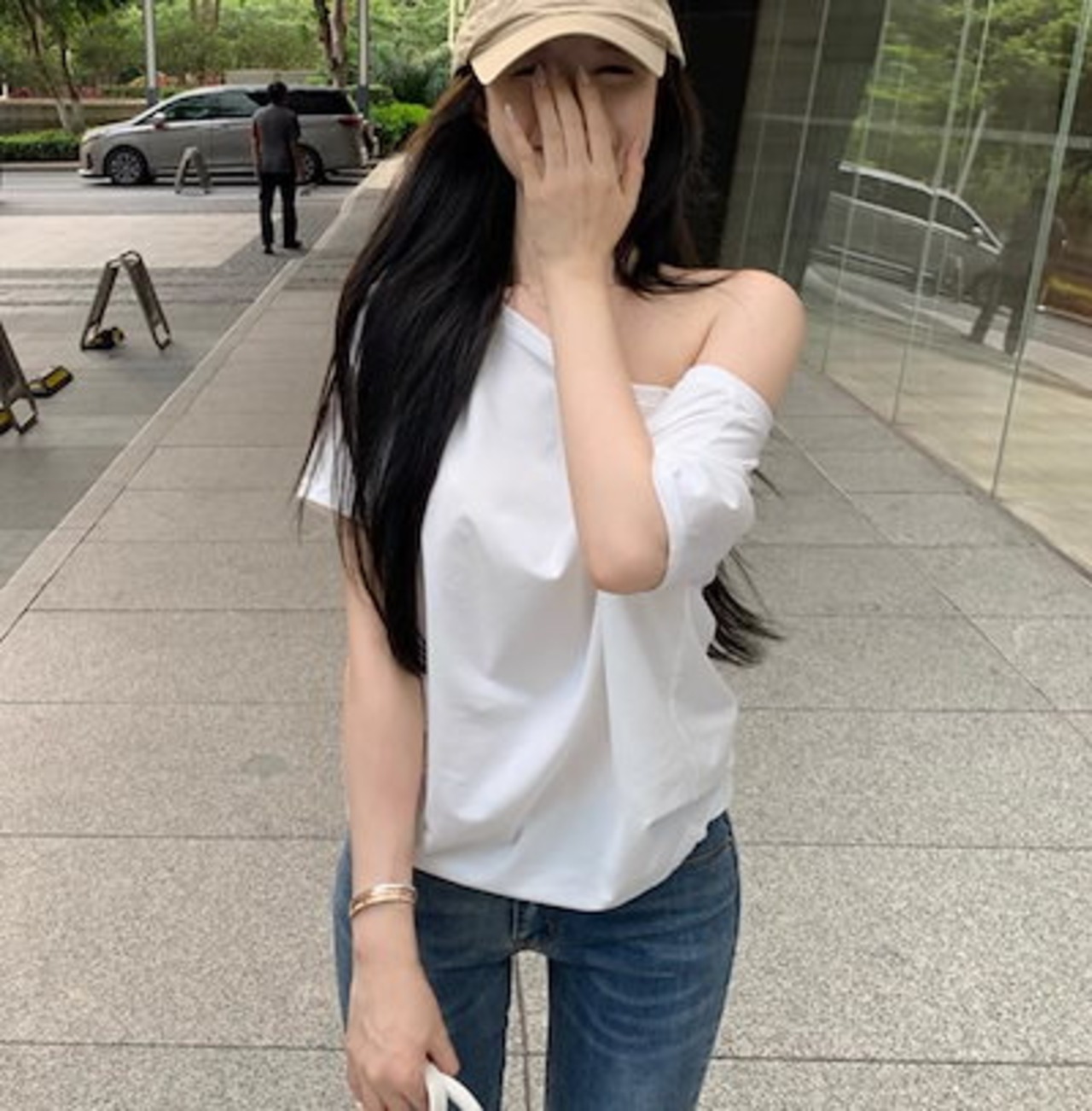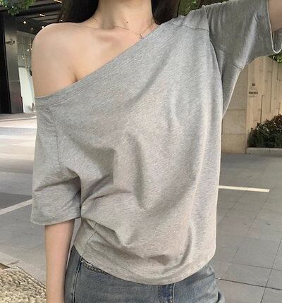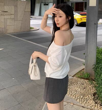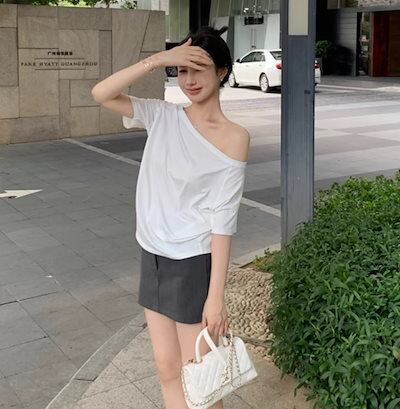 2024 春夏 甘い 2wayトップス Tシャツ ラウンドネック丈 休日 フレンチ 韓国 半袖ブラウス ファッション系 タイト スリムフィット丈短め ショート レディースへそ出し休日おしゃれ T