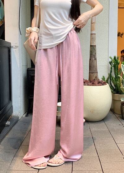 2024 春夏パンツ ロング丈 ウエストゴム ワイド ストレート ハイウエスト 美脚効果 脚長効果 細見え 夏 白 黒 おしゃれ かわいい 韓国ファッション レディース お出かけ