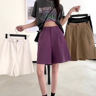 2024 春夏パンツ ハーフパンツ ワイド レース ハイウエスト 美脚効果 脚長効果 細見え 夏 茶色 黒 白 紫 おしゃれ かわいい 韓国ファッション レディース お出かけ
