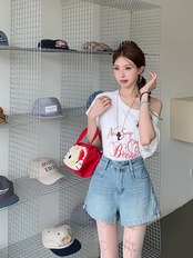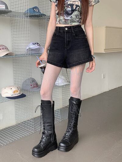 2024 春夏パンツ ショート丈 デニム ジーンズ ワイド ハイウエスト 美脚効果 脚長効果 細見え 夏 水色 黒 おしゃれ かわいい 韓国ファッション レディース お出かけ