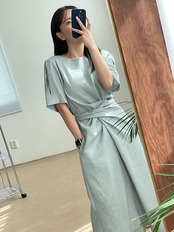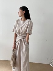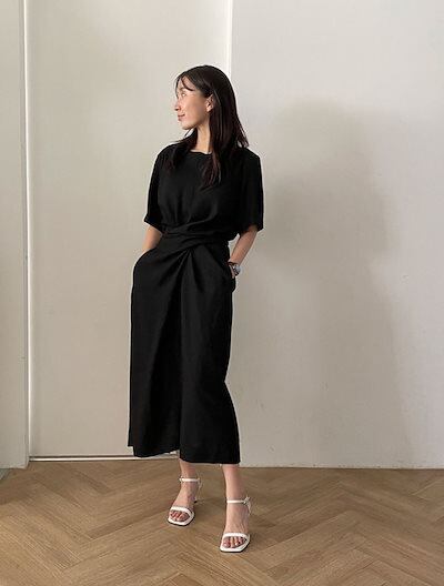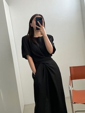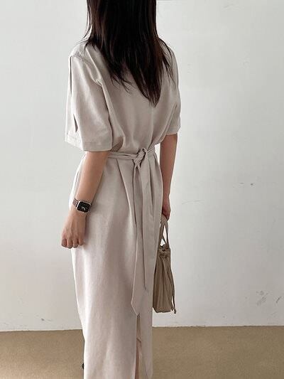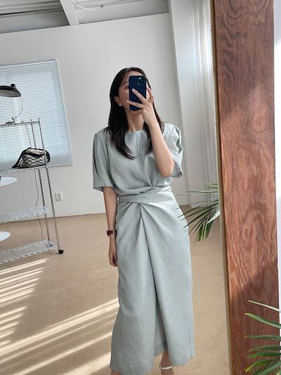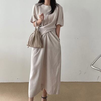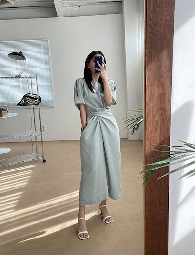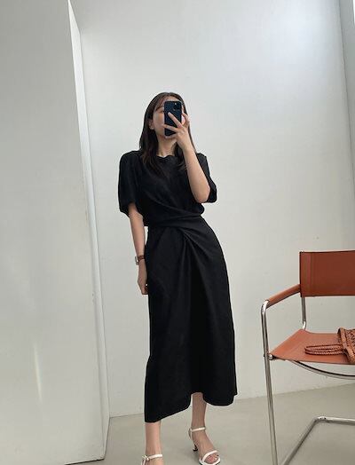 2024夏 韓国ワンピース 半袖 ラウンドネック ミモレ丈 Aライン ゆったり 細見え 夏 緑 白 黒 おしゃれ かわいい きれいめ 韓国ファッション レディース お出かけ