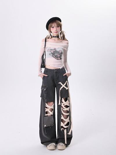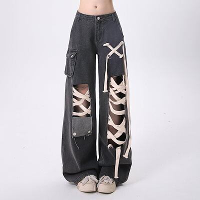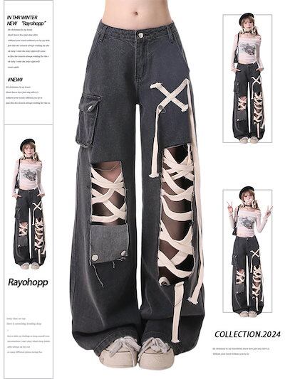 2024夏 韓国 デニムパンツ ボトムス ジーンズ ファッション系スタイル ゆるダボ ジーンズ シルエット加工 カジュアル メンズライク10