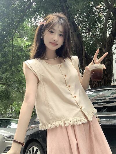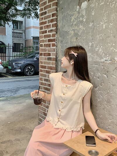 2024 春夏 甘い トップス Tシャツ ラウンドネック丈 休日 フレンチ 韓国 ブラウス ファッション系 タイト スリムフィット丈短め ショート レディース へそ出し 休日 おしゃれ T