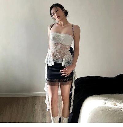 2024 春夏トップス 半袖 Tシャツ 韓国 レイヤード風 着痩せスリムかわいい異素材フレンチセクシーラウンドネックおしゃれスリーブカジュアルコーデショート丈ファッション系レディースお出かけ T
