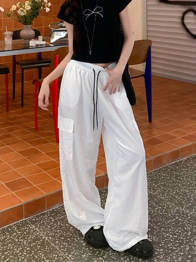 2024春夏パンツ ロング丈 サイドポケット ウエストゴム ワイド ストレート ハイウエスト 美脚効果 脚長効果 細見え 夏 白 黒 緑 赤 おしゃれ かわいい 韓国ファッション レディース お出かけ