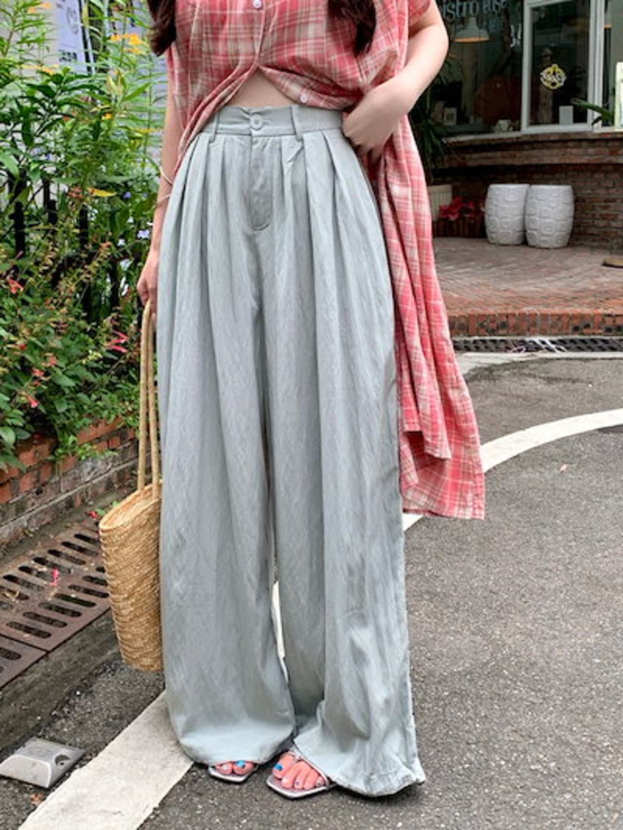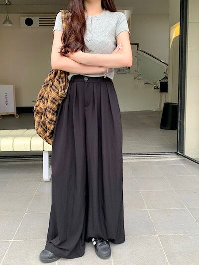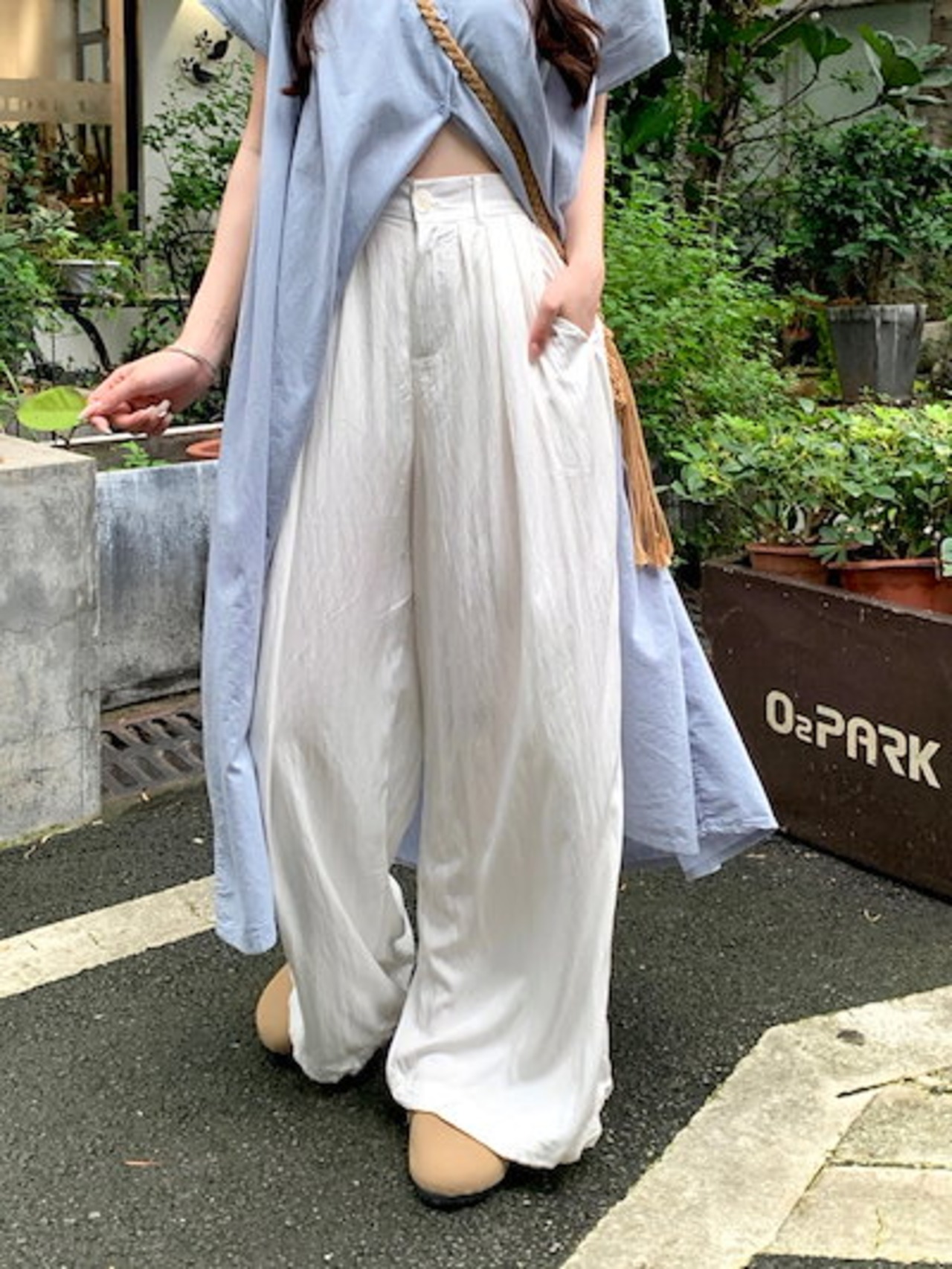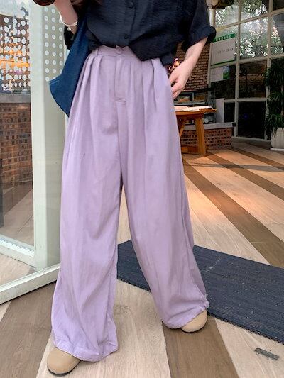 2024 春夏パンツ ロング丈 ワイド ストレート ハイウエスト 美脚効果 脚長効果 細見え 夏 白 黒 紫 おしゃれ かわいい 韓国ファッション レディース お出かけ