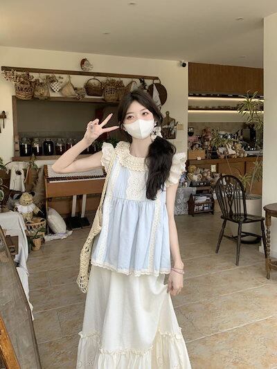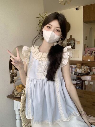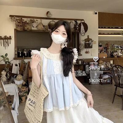 2024春夏トップス シャツ 半袖 スタンドカラー ゆったり かわいい おしゃれ 肌見せ大人っぽい フレンチ きれいめ カジュアル 韓国ファッション系 レディース お出かけネック