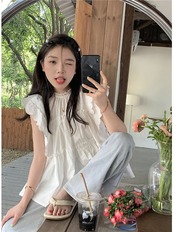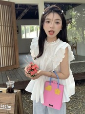 2024夏 韓国トップス シャツ 半袖 スタンドカラー フラワー 花 ゆったり かわいい おしゃれ 大人っぽい フレンチ きれいめ カジュアル 韓国ファッション系 レディース お出かけ