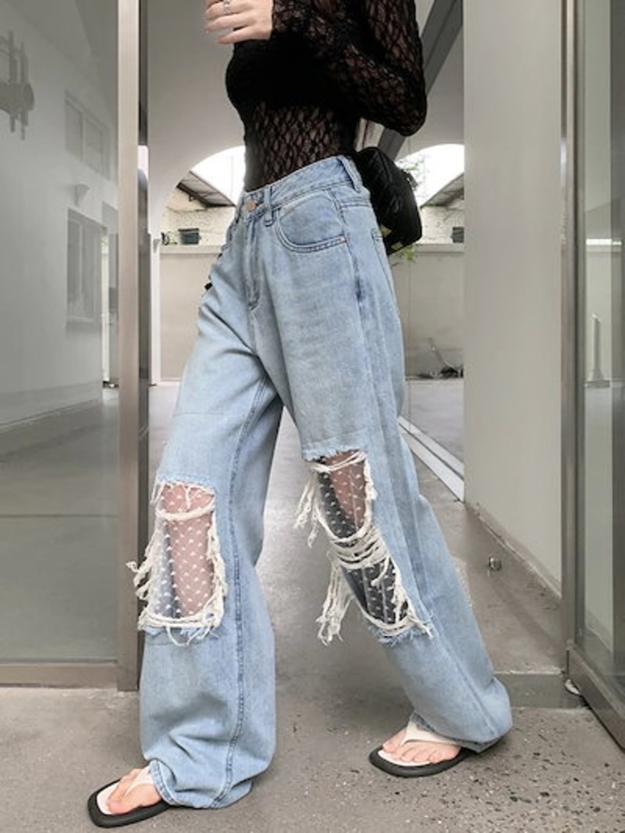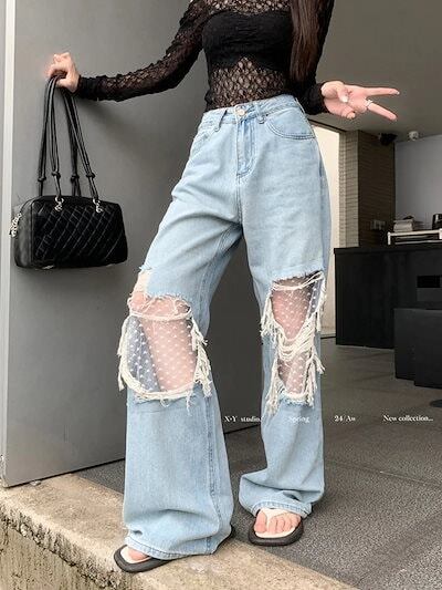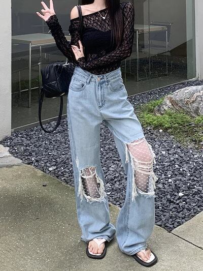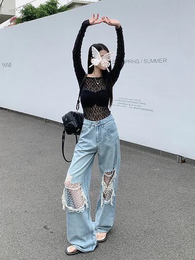 2024春夏 デニムパンツ ボトムス ジーンズ ファッション系スタイル ゆるダボ ジーンズ シルエット加工 カジュアル メンズライク
