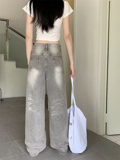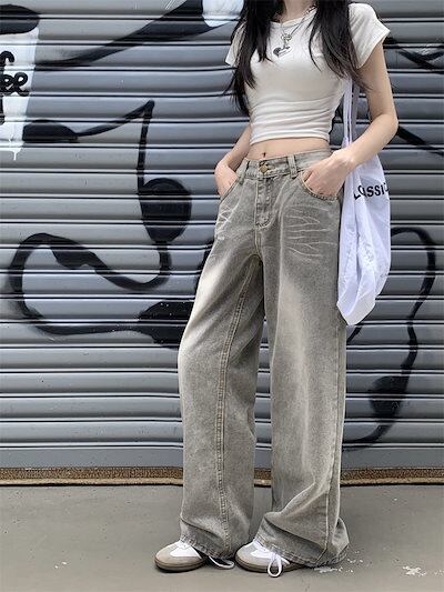 2024春夏パンツ デニム ジーンズ ロング丈 ハイウエスト 美脚効果 脚長効果 細見え 秋冬 おしゃれ 加工 かわいい 韓国ファッション レディース お出かけ