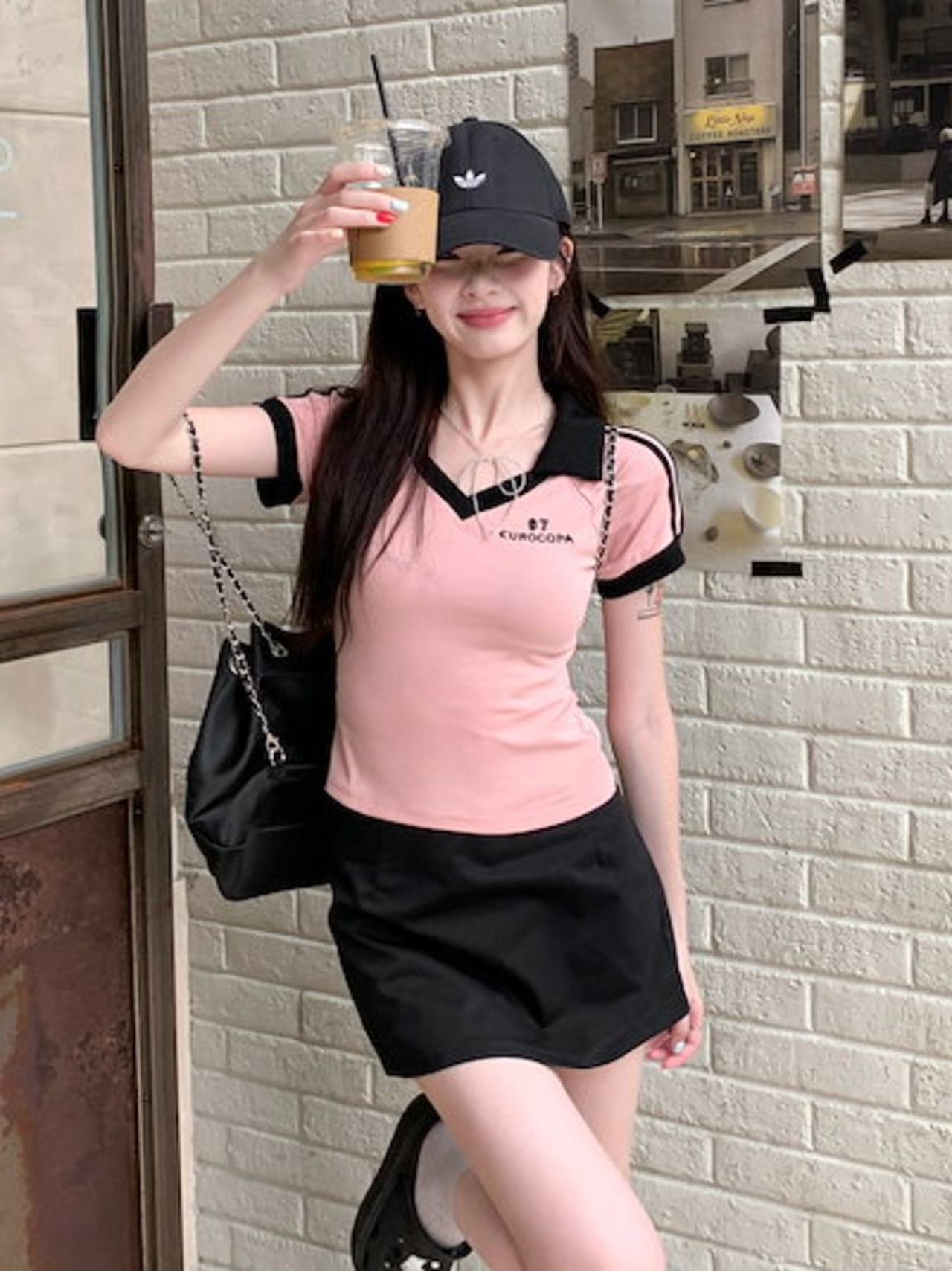 2024 春夏トップス 大人可愛い半袖 Tシャツ 韓国 ラウンドネックロゴスリム かわいいへそ出し ショート おしゃれスリーブ カジュアルサイドコーデ丈 ファッション系レディースストリートお出かけ T