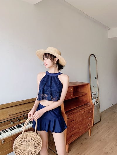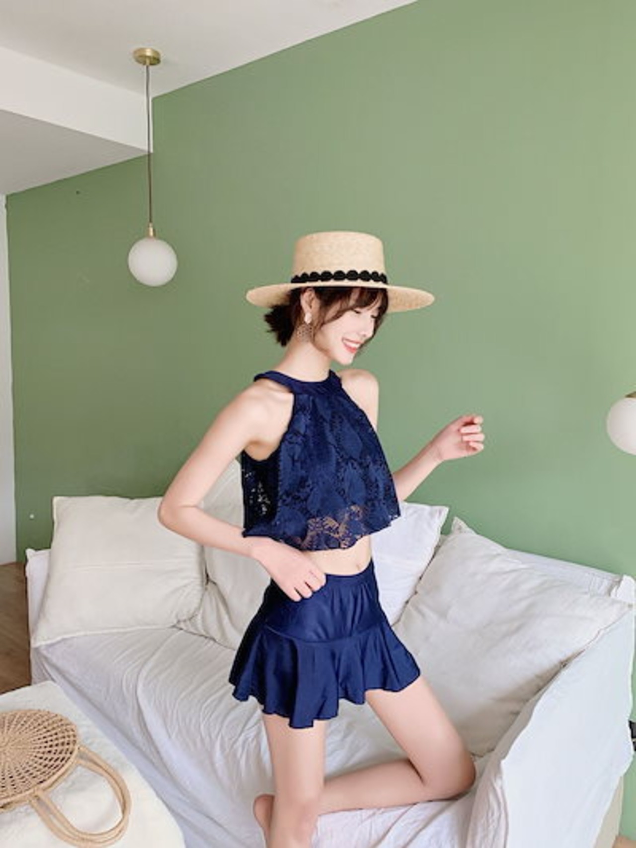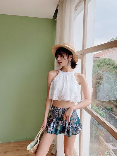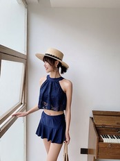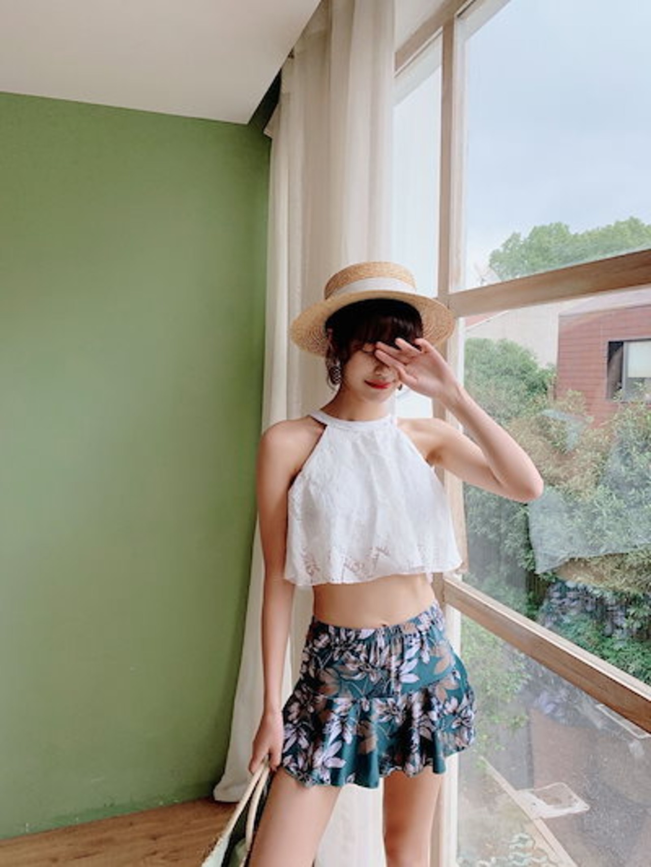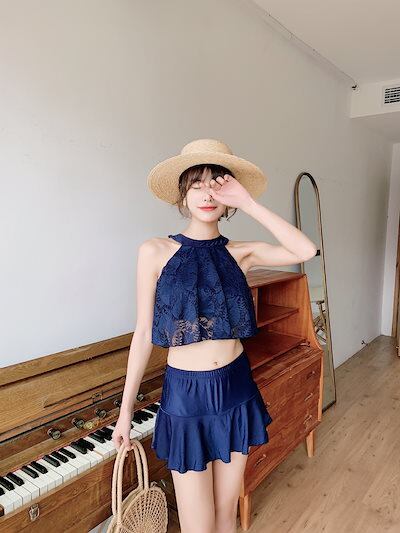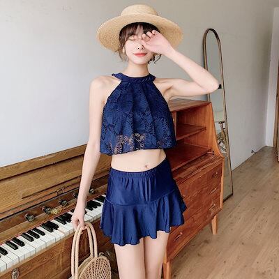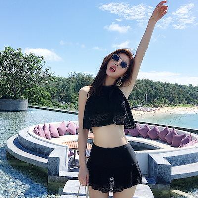 2024 水着 ビキニ 韓国ビキニ 小胸 体型 黒 ブラック カバー水着 韓国水着 タンキニ ハイウエスト スイムウェア 美脚 脚長 スタイルアップ 大人女子