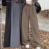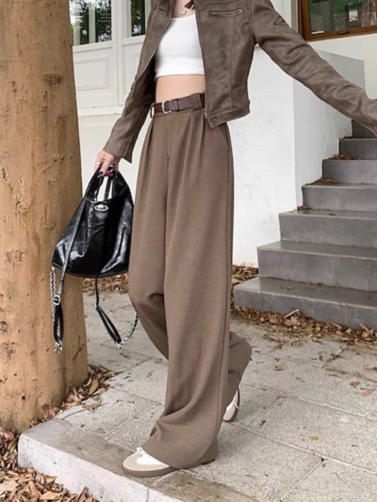 2024 春夏パンツ ロング丈 タック ワイド ストレート ハイウエスト 美脚効果 脚長効果 細見え 夏 茶色 黒 おしゃれ かわいい 韓国ファッション レディース お出かけ