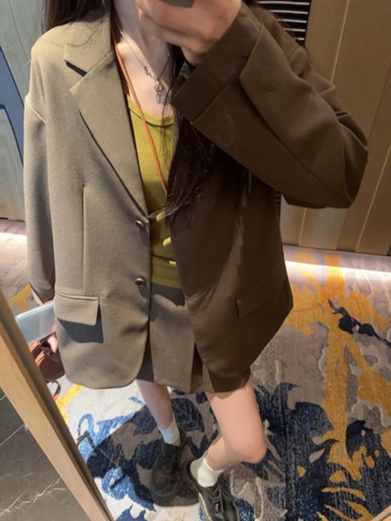 2024秋冬2点セット アウター ジャケット テーラードカラー 長袖 スカート ミニ丈 秋 茶色 おしゃれ かわいい 韓国ファッション レディース お出かけ