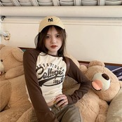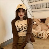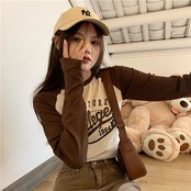 2024春夏 トップス 長袖 可愛い おしゃれ フィット ラウンドカラー 重ね着丈 スリーブ 女っぽ Tファッション フェミニン きれいめ 色っぽ プリント