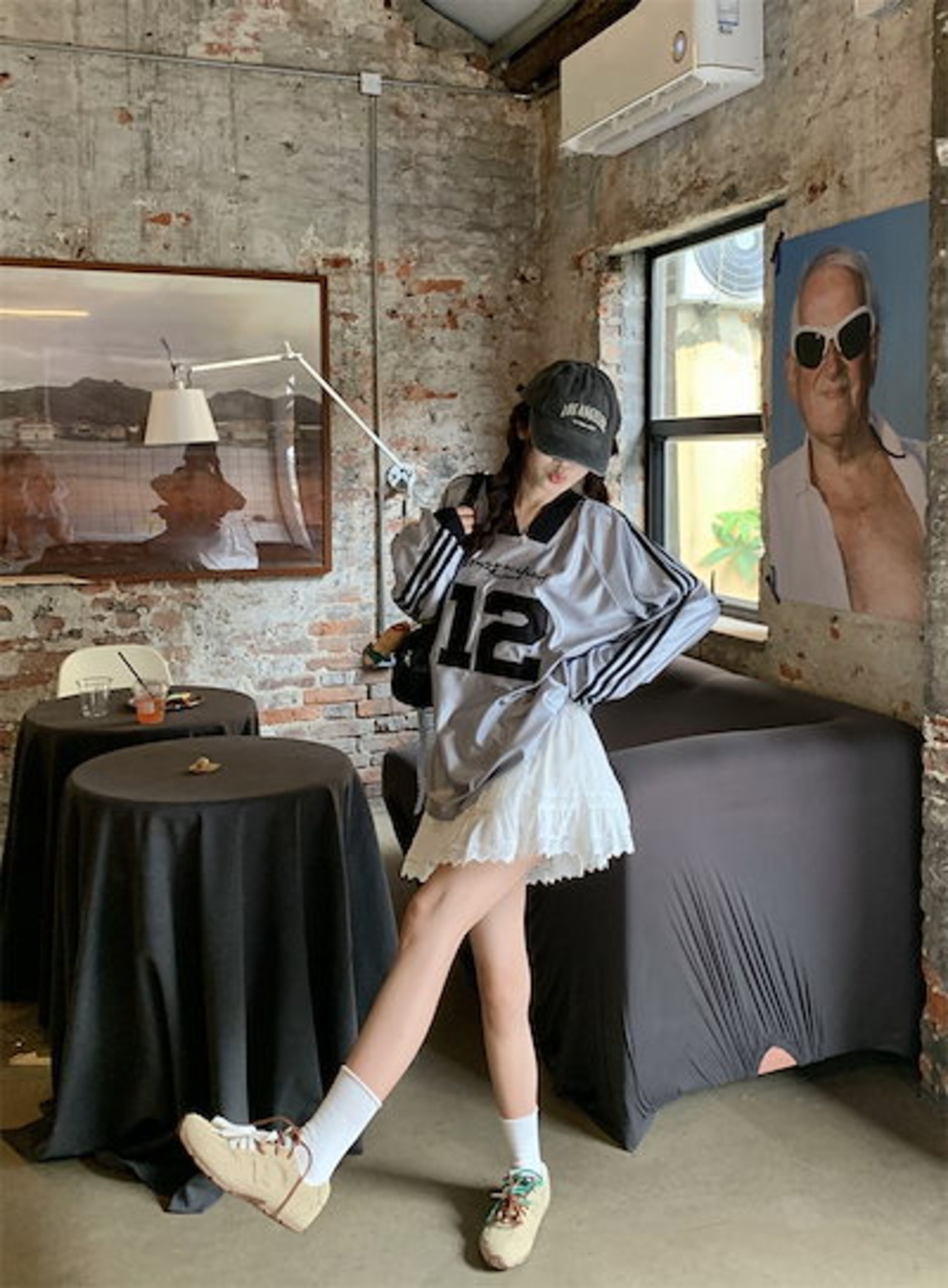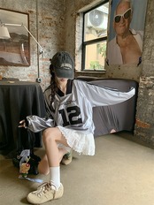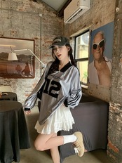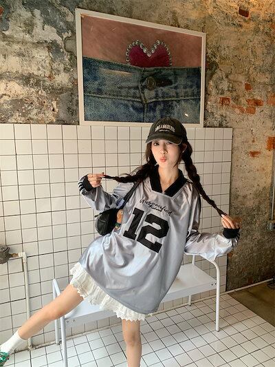 2024 秋冬 トップス 長袖 かわいいラウンドネック Tシャツ レディース 韓国風 12ロゴ衣装ルーズ ゆったりカジュアルおしゃれサイズスリーブシルエットファッション系サイドシャツフットスウエット春