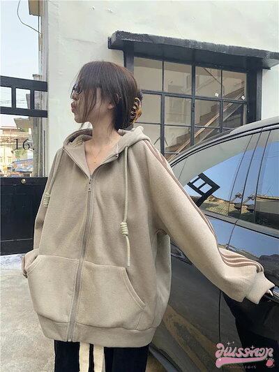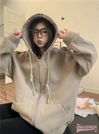 選べる2タイプ 薄手 厚手 裹起毛 パーカー フード付き羽織りスタイルアップ女っぽ きれいめ 大人っぽ 上品 サイズゆったりカジュアルトラックストリートシルエットスリーブ通学 学生ファッション秋冬春