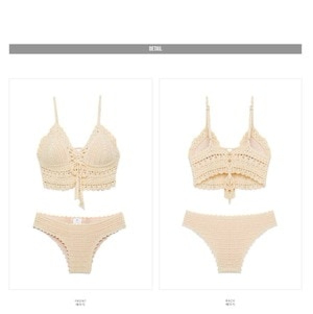 2024 水着 ビキニ レディース 女の子 ニット 体系カバー セクシー きれいめ クロシェ 水着 ニットビキニ 10代 20代 30代 スウィムウェア ベージュ 編み込み風 レース かっこいい 韓国