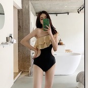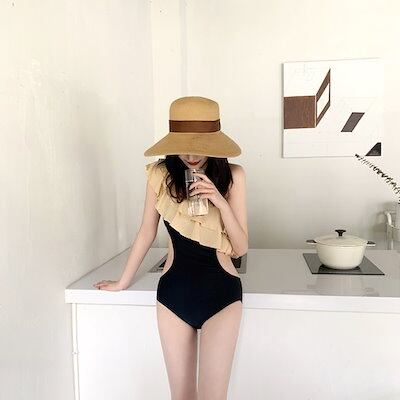 2024 夏 韓国 露出を控えた ファッション ビキニ スイムウェア付き タンキニ スタイルアップ 花 大人女子水着
