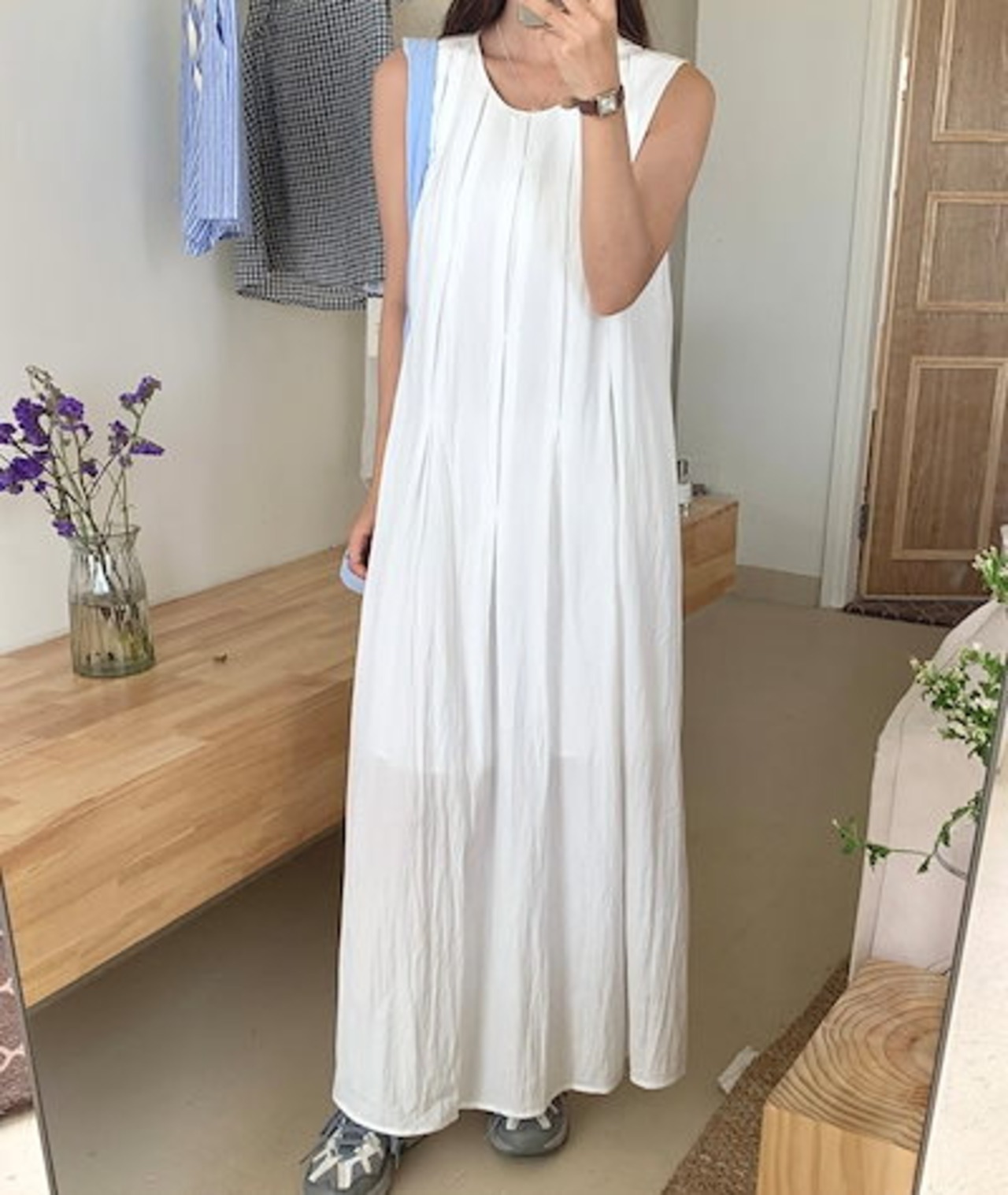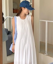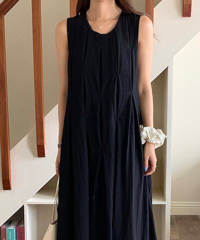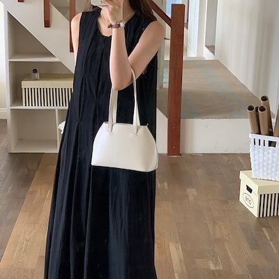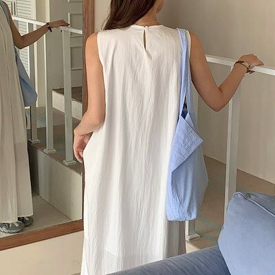 2024 夏 韓国ワンピース ノースリーブ ラウンドネック Uネック ロング丈 Aライン 細見え 夏 白 黒 おしゃれ かわいい 甘め キュート ラブリー 韓国ファッション レディース お出かけ