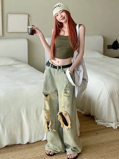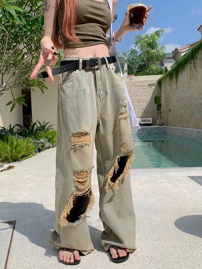 2024春夏 デニムパンツ ボトムス ジーンズ ファッション系スタイル ゆるダボ ジーンズ シルエット加工 カジュアル メンズライク