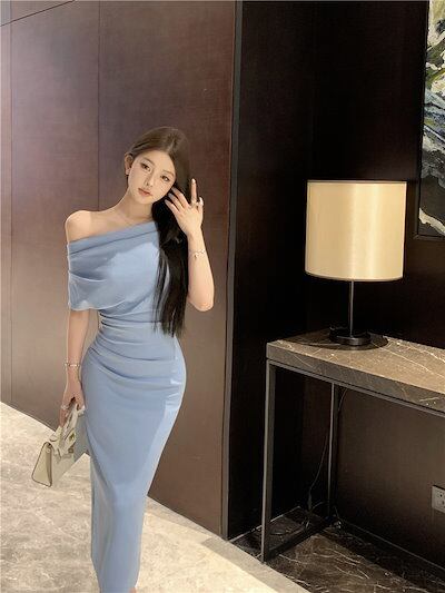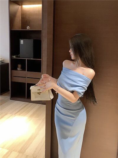 2024 春夏 ロングワンピース ロング丈 ワンピース 長袖 ファッション フィット カジュアル パーティー きれいめ ハイ ハーフリブフレンチスタイルアップ 色っぽ 女っぽ カジュアル大人