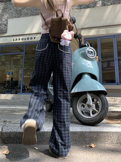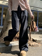 2024 春夏パンツ ワイド ストレート ハイウエスト 脚長効果 美脚効果 細見え チェック柄 レトロ 春 黒 カジュアル おしゃれ かわいい 韓国ファッション レディース お出かけ