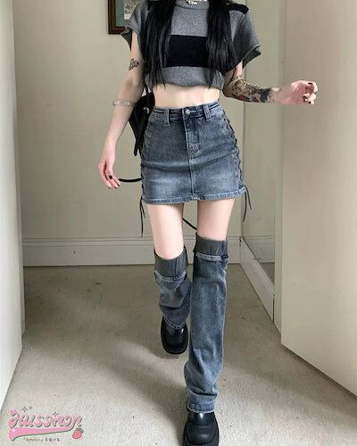 2024春夏 デニム スカート 2点セット デニム ハイウエスト ジーンズ カジュアル 美脚 脚長丈加工 レディース